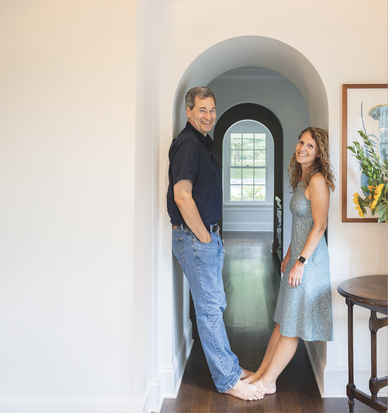 Though David and Nicki met in 2010 and were married in 2013, they had never really lived together or made a home of their own until their move to Bedford. “It’s complicated,” Nicki laughs, referencing the popular movie, “but maybe I’ll explain this one.” The couple are a bit more lovey-dovey and smiley than most mature couples, seem like they’re sharing a secret, and work in concert — as David demurs ‘explaining this one’...even though he’d be happy to do so. “I was born in Vienna and lived in Germany before we moved to Kinnelon, New Jersey, when I was five. I went to Franklin & Marshall, and then started out working in publishing with a travel magazine in New York City. I moved to Oahu and then San Francisco, and in 2010 I was a divorced mom raising my kids and working in public relations — first at Yahoo - for about ten years, and then with a firm that, as luck would have it, was working on publicizing a solid-oxide fuel cell…that David was doing a segment on for NOVA! I met David at the Oakland Airport to shoot the segment…and I was smitten. We had a real connection, but I have two kids and David has three and each of our youngest kids were 4 years old at the time, and my life was going on in San Francisco and David’s was in Westport. David sent me a picture of the two of us that had been taken at the NOVA shoot, and for months our relationship was solely in writing.”